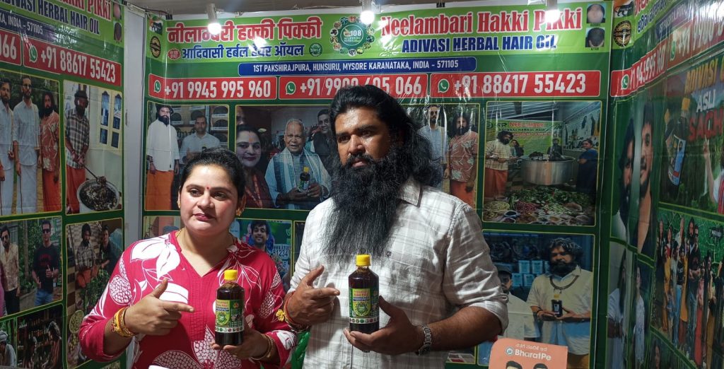 (নীলাম্বরী হকি পিকি -এর বিভিন্ন ধরনের জরিবুটি ওষুধ তৈরি করেছে। তাদের আদিবাসী হারবাল হেয়ার অয়েল যথেষ্ট কাজের। গ্র্যান্ড ট্রেড ফেয়ারে তাদের যথেষ্ট সারা পাওয়া গেছে। তাদের মোবাইল নাম্বার ৯৯৪৫৯৯৫৯৬০।)