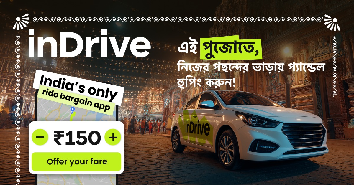 ইনড্রাইভ কলকাতার মানুষকে আহ্বান জানাচ্ছে এই পুজোয় বেশি বেশি রাইড নিতে, ড্রাইভার কমিউনিটিকে সহযোগিতা করতে এবং ভ্রমণের চাপ ছেড়ে উৎসবের আনন্দে ডুব থাকতে। কারণ প্রতিটি রাইড মানে ড্রাইভারের জন্য বাড়তি আয় আর শহর জুড়ে মানুষের আরও আনন্দ।